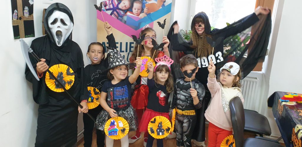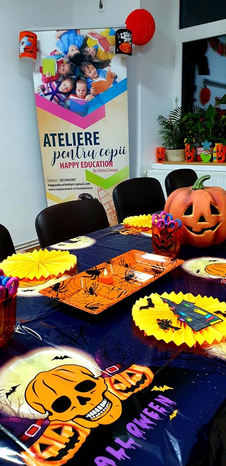 Dragi mamici, tatici, bunici, daca copilul dvs. sta singurel 1 ora jumatate la un program de creatie si recreatie… atunci locul lui este langa noi! SAMBATA 26.10.2019 orele 11.30-13.00 va astept cu drag sa dam frau liber imaginatiei prin decupaje, colaje si asamblari specifice zilei de Hallowen. Puteti participa la acest atelier singular cu pretul de 55 lei/copil, sau sub forma de ABONAMENTE 2+2 = 4 SEDINTE (2 cursuri de dezvoltare + 2 ateliere de creatie)